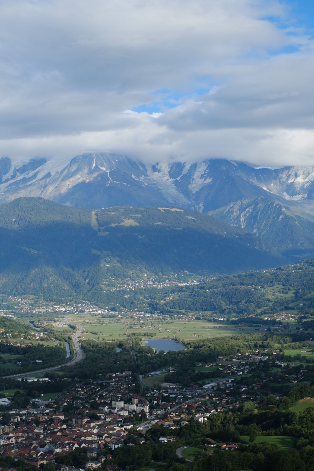 Vue de Sallanches avec le massif du Mont-Blanc.